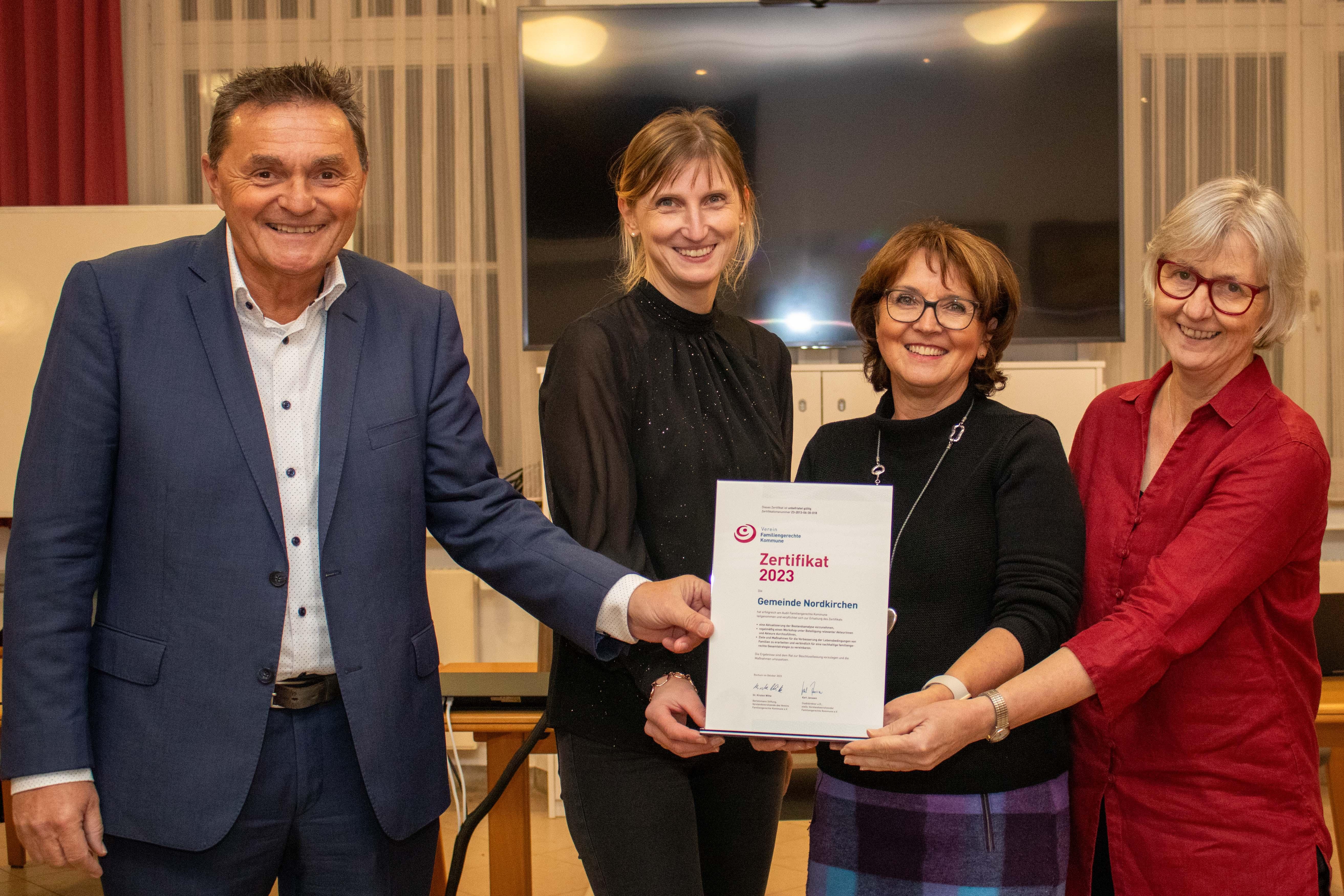Wir sind wieder dabei! Die Gemeinde Nordkirchen hat den Auditierungsprozess zur Familiengerechten Kommune Nordkirchen zum dritten Mal erfolgreich durchlaufen. Im Dezember 2023 wurde der Gemeinde Nordkirchen offiziell das Erhaltungszertifikat „Familiengerechte Kommune Nordkirchen” übergeben.