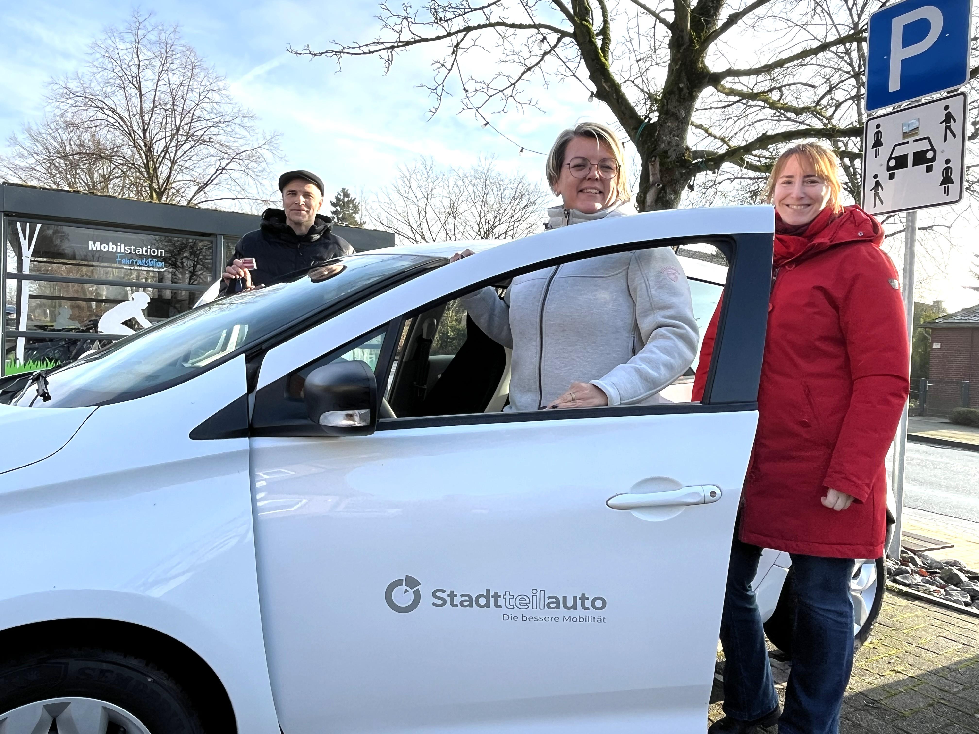 Für die Buchung und Nutzung der Carsharing-Fahrzeuge wird die Stadtteilauto-App für Apple oder Android benötigt, die im App-Store heruntergeladen werden kann. Im Handschuhfach befindet sich der Autoschlüssel oder eine Chipkarte, mit denen das Auto gestartet und ganz normal bei einem Zwischenstopp ab- und aufgeschlossen werden kann.
