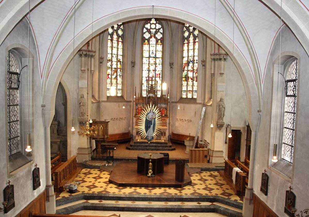 Mit einem geschulten Auge fürs Details erläutert Ihnen die Gästeführerin die nahezu vollständige neugotische Ausstattung aus volkskundlicher Sicht. Im Jahr 2015 wurde die Kirche liebevoll renoviert. Dabei wurde viel Wert darauf gelegt, die traditionelle Ausstattung und Fensterbemalung beizubehalten.